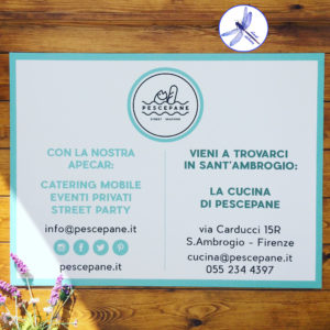 Le pietanze hanno mantenuto l’origine di questa cucina genuina e gustosa, cioè lo street food. Tutto è iniziato anni fa con una celeste “APECAR food truck pescepane” e tutt’ora il servizio è operativo nella stagione estiva, mentre durante le altre stagioni l’”APE” vintage rimane a disposizione per chi volesse organizzare eventi privati e aziendali.