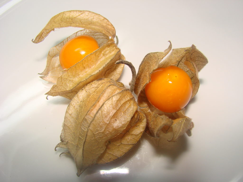 L’alchechengi ( Physalis alkekengi L.) è una bacca arancio, o gialla delle dimensioni di una ciliegia protetta da una membrana molto sottile che rievoca la carta di riso utilizzata per i paralumi cinesi.